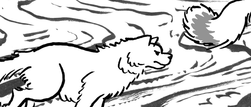 Un vrai temps de chien sur la banquise. Nansen et Johansen filent bon vent mal vent vers le pôle avec eux, 28 chiens bêtes de somme...